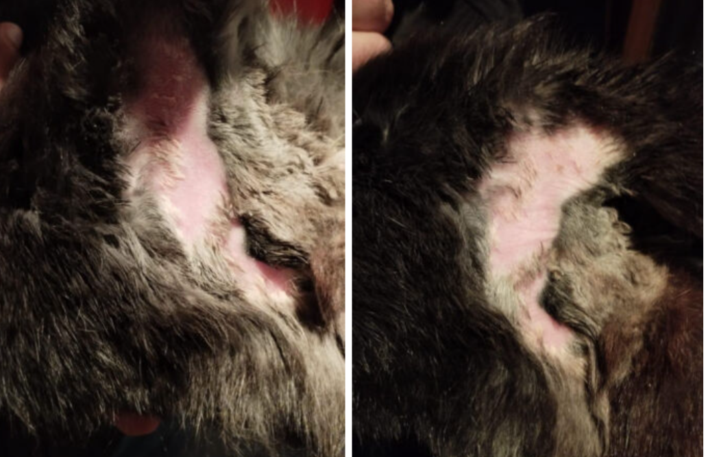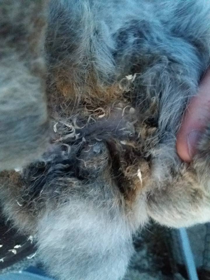 Parvus has a deviated penis and therefore urinated on himself. By keeping the fur short and using RoboCare Purexam (letting it act for a short time), he no longer has skin inflammation or hair loss today.