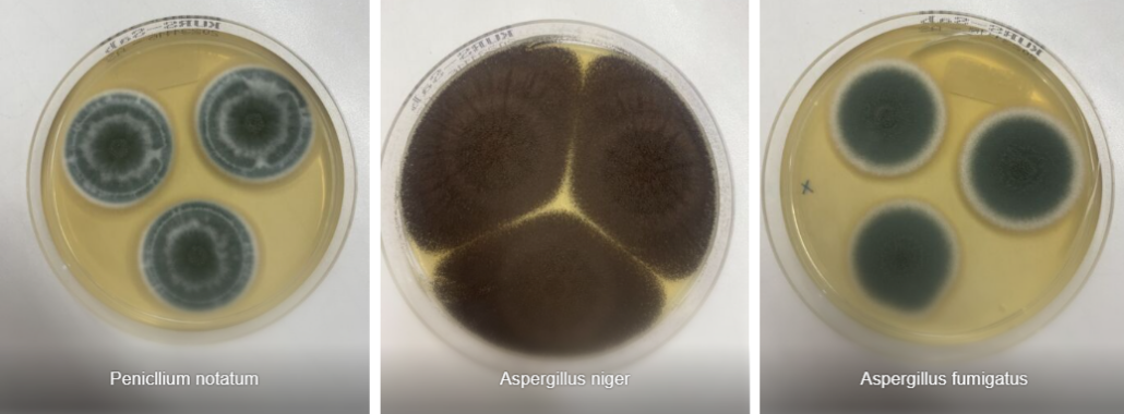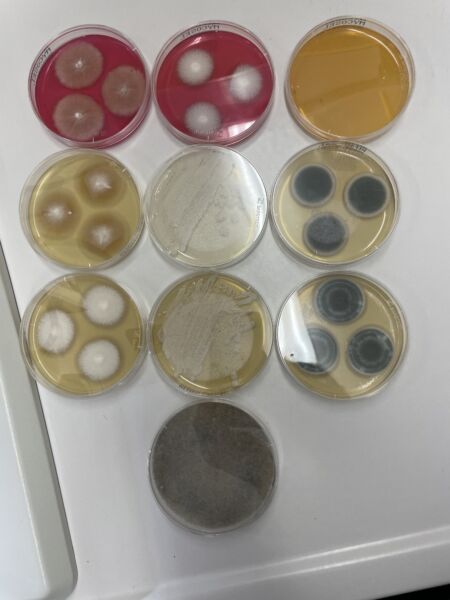 Agar plates with mold cultures for the identification of fungi in rabbits (Penicillium notatum).