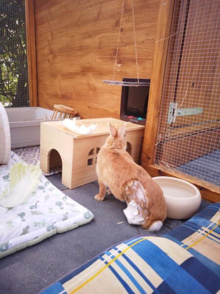 - Suitable surface and environment: A non-slip floor and sufficient space are essential so the rabbit can move safely. All obstacles in the movement area should be removed.