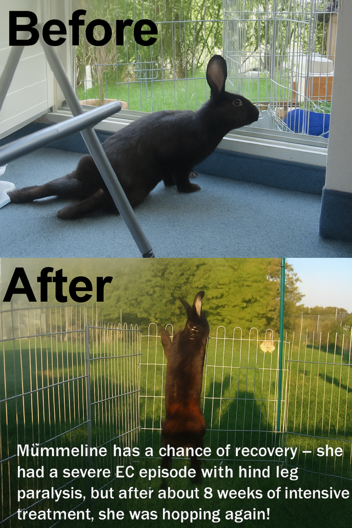- Psychological aspects: An animal that can move again often shows more interest in its surroundings, eats better, and interacts more with other rabbits or with people.
